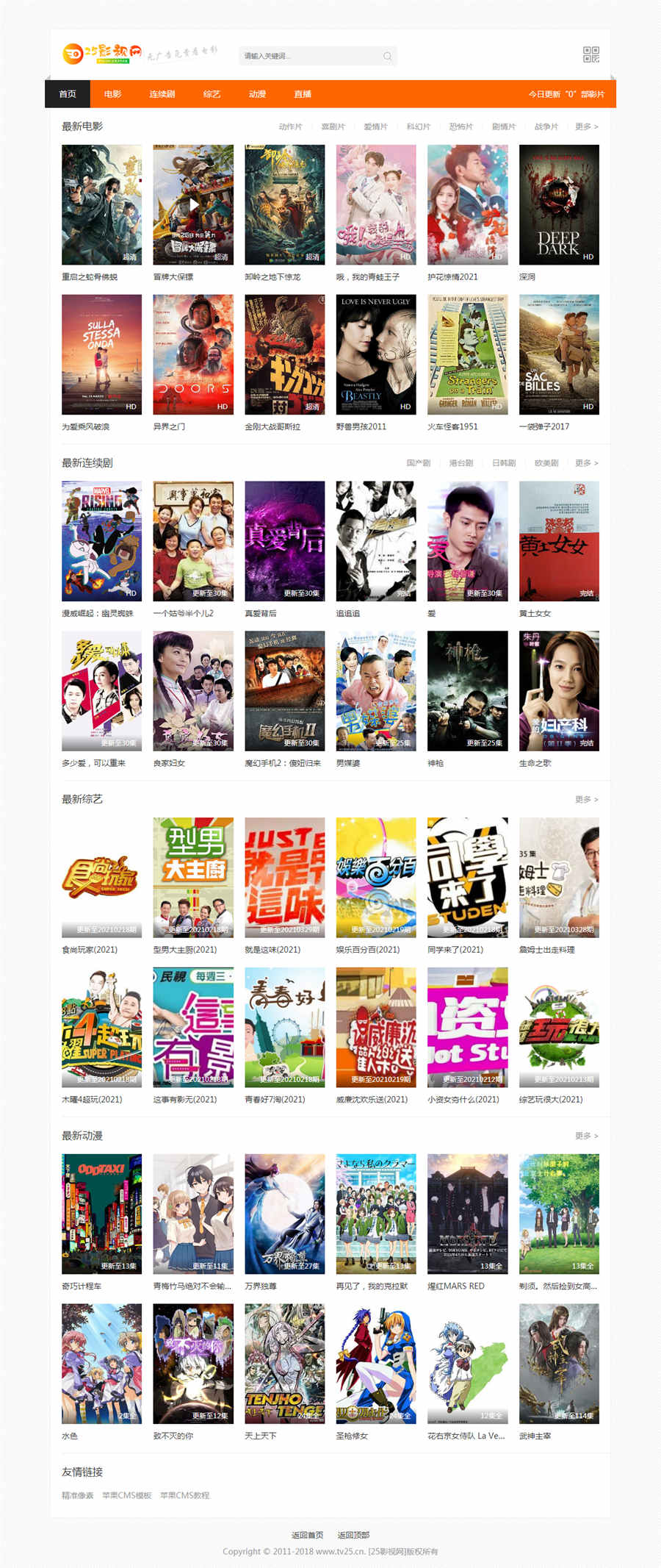 仿25影视网苹果CMS模板,苹果CMSV10版本,自适应手机端,已测试完美无错。