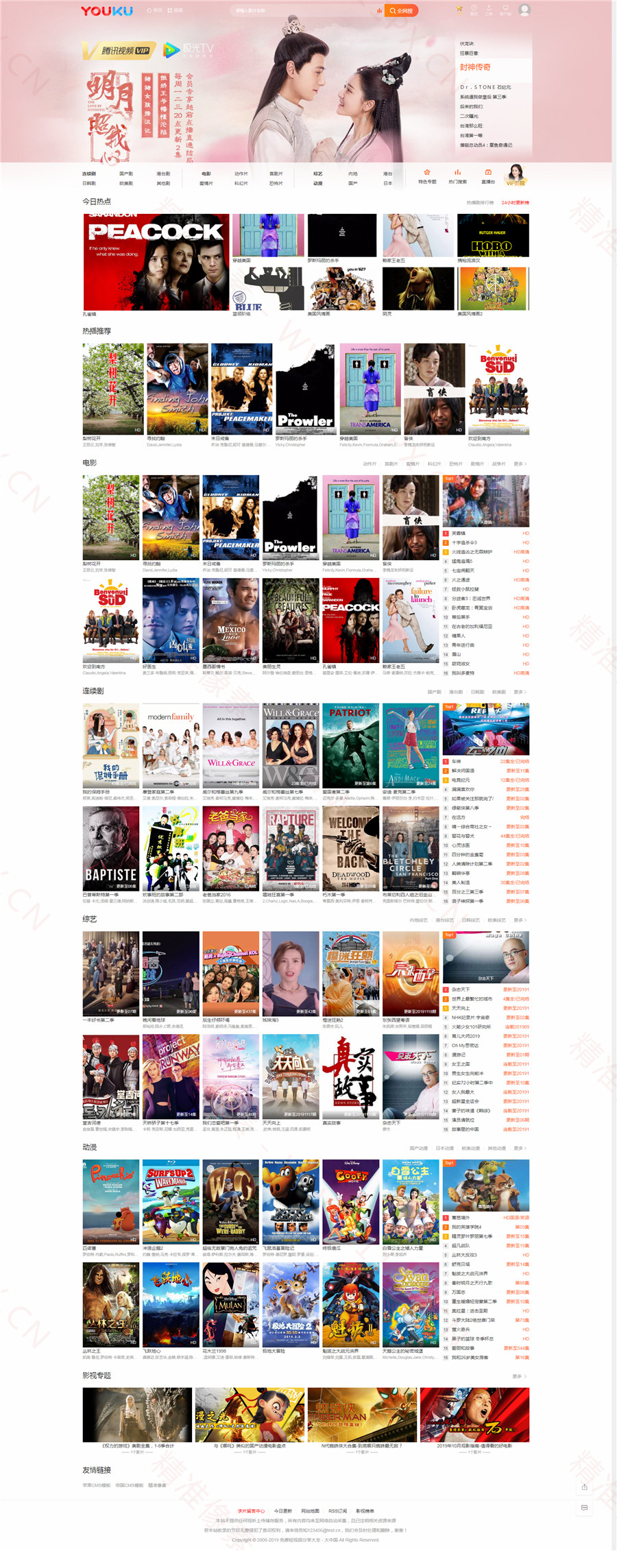 苹果CMSV10精仿优酷影视自适应网站模板