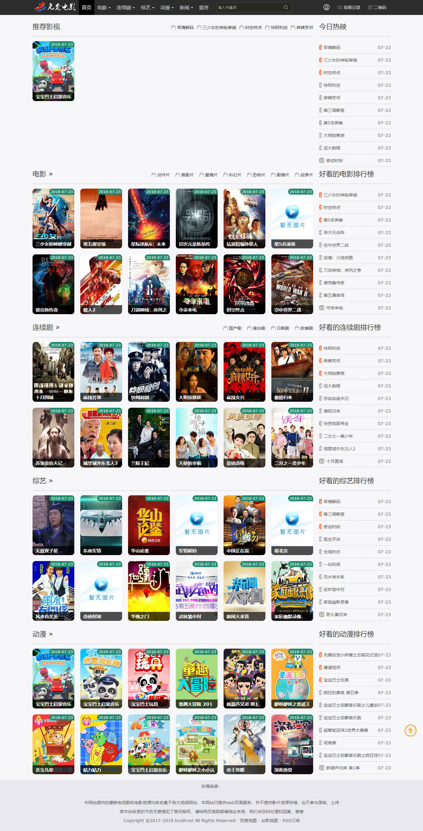 苹果cmsV10暗色系在线动漫影视网站模板