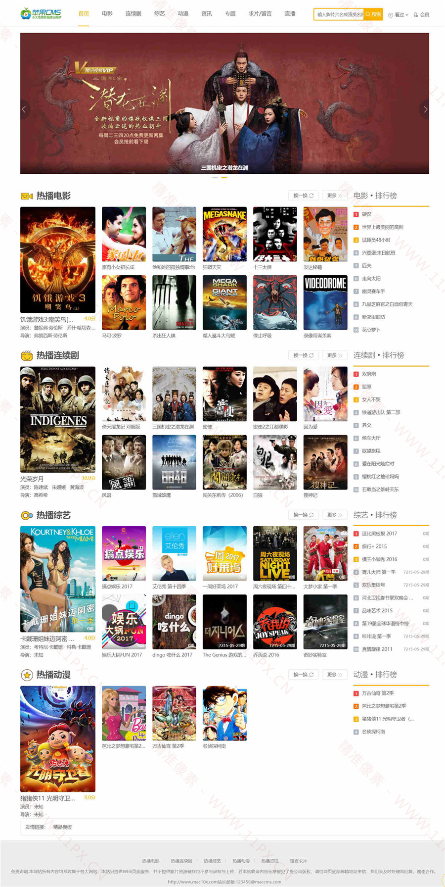 简洁自适应苹果cms模板,苹果cmsv10版本,免费下载,只有电脑端,已测试完美无错。