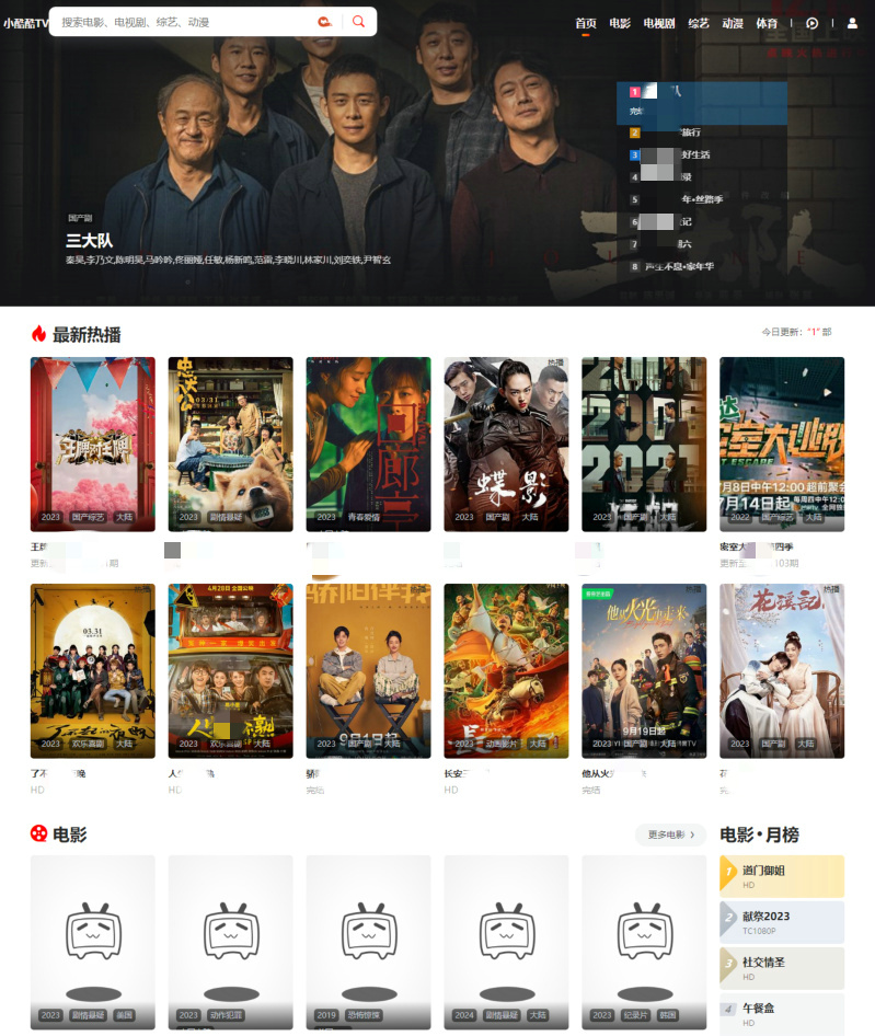 6、首页最新热播的左侧额外的推荐电影名称:视频推荐 5