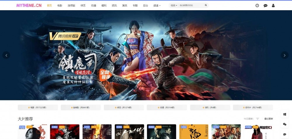 【首涂第二十一套】为首款原创带后台设置的苹果cmsv10模板,自带3款播放器样式、3个播放列表样式、4个皮肤风格、3个幻灯样式,包含了会员、专题、资讯、明星、评论、下载、留言页面等样式及全部功能。