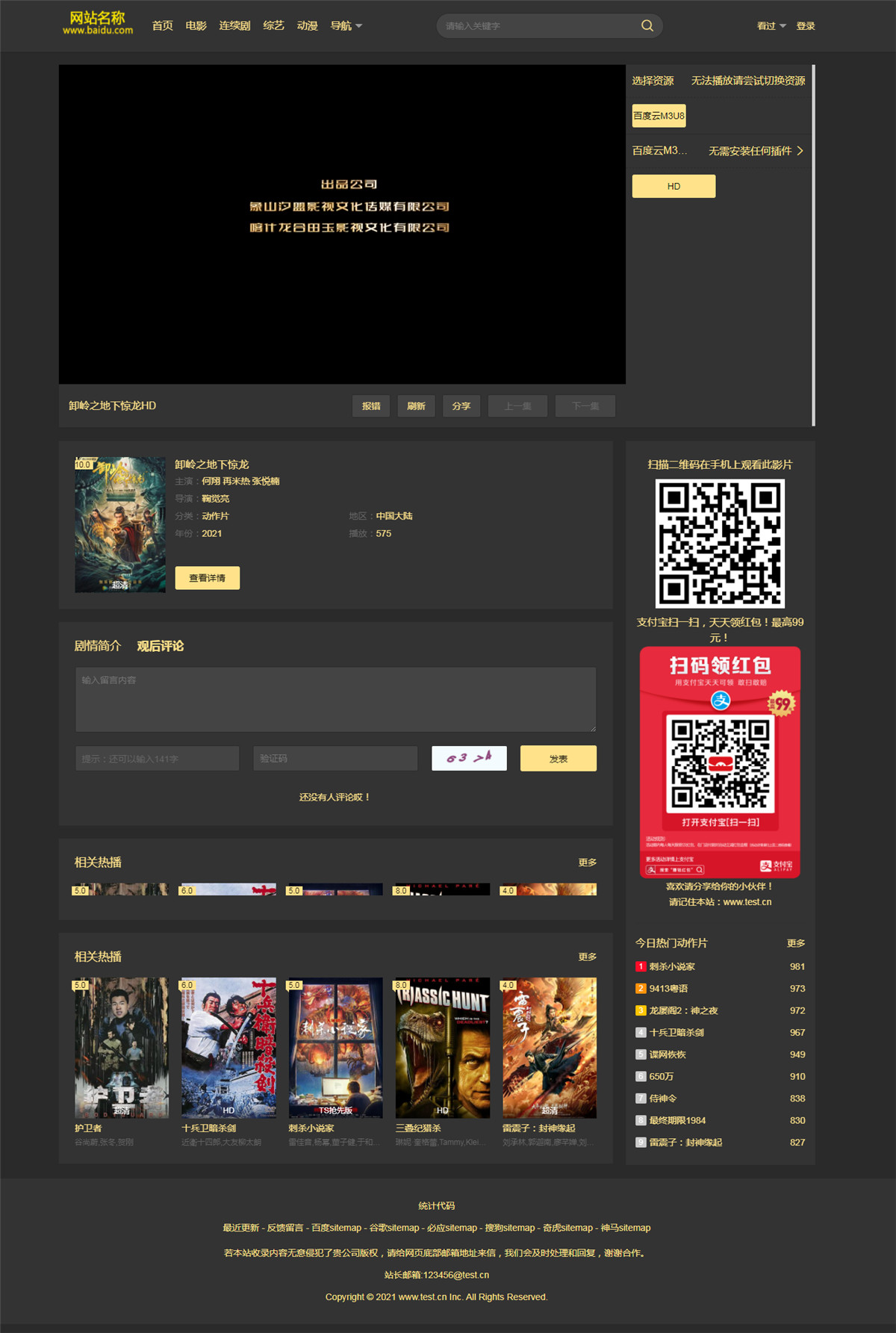 苹果CMSv10黑金色自适应网站模板,已测试,完美无错。