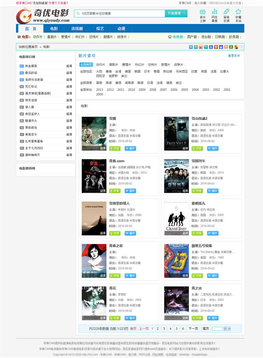 仿奇优电影网苹果CMS模板 双端苹果CMSv8模板