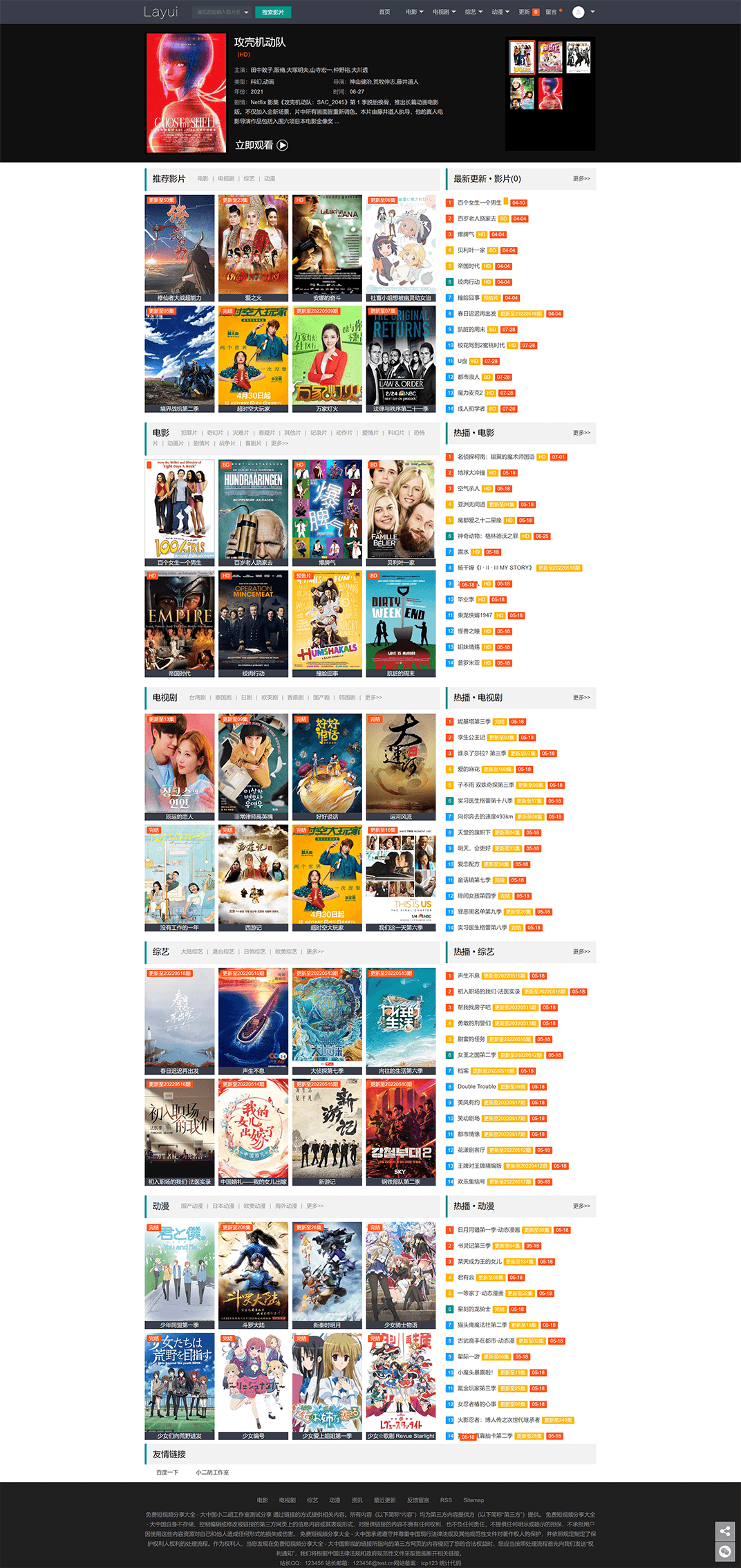 基于Layui开发的自适应苹果CMS V10影视主题模板