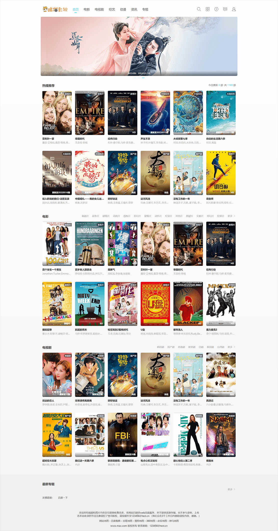 苹果CMS V10简约自适应白色影视主题模板 带资讯和会员中心