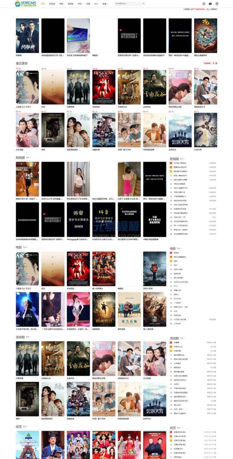 模板是有 最基本的 首页、分类页、筛选页、详情页、播放页、搜索结果页,适合快速建批量站项目。