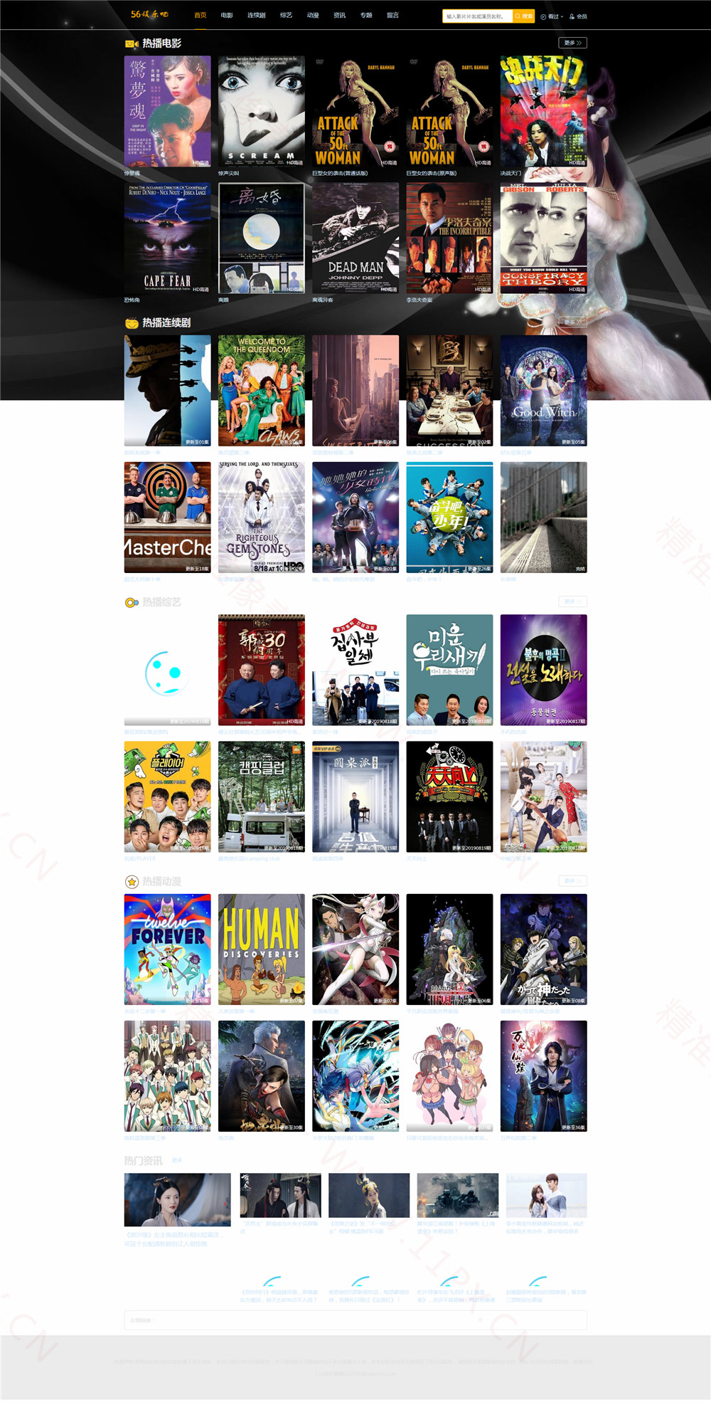 仿56娱乐吧自适应模板,苹果CMSV10模板,自适应手机端。网站模板基于苹果CMS v10开发,utf-8编码。