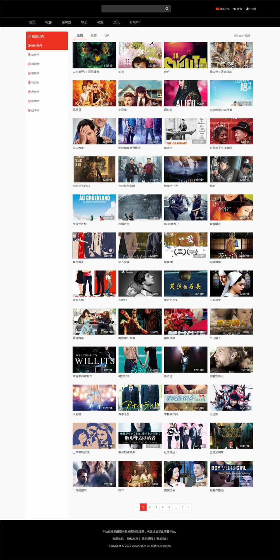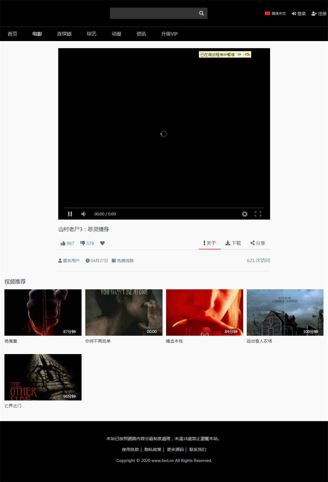 已测试完美无错,模板非常简单,包含:首页、列表、播放页、会员中心、VIP充值页面、搜索。