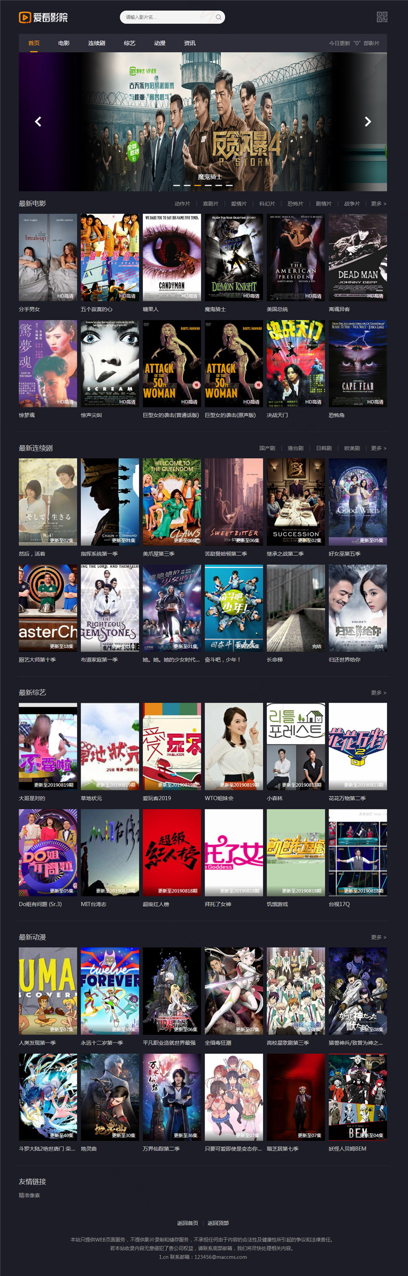 苹果CMS仿爱看影院网站主题模板,网站模板测试完美无错,安装即可使用。本苹果CMS模板为v10版本,网站模板为UTF-8编码,自适应手机端。