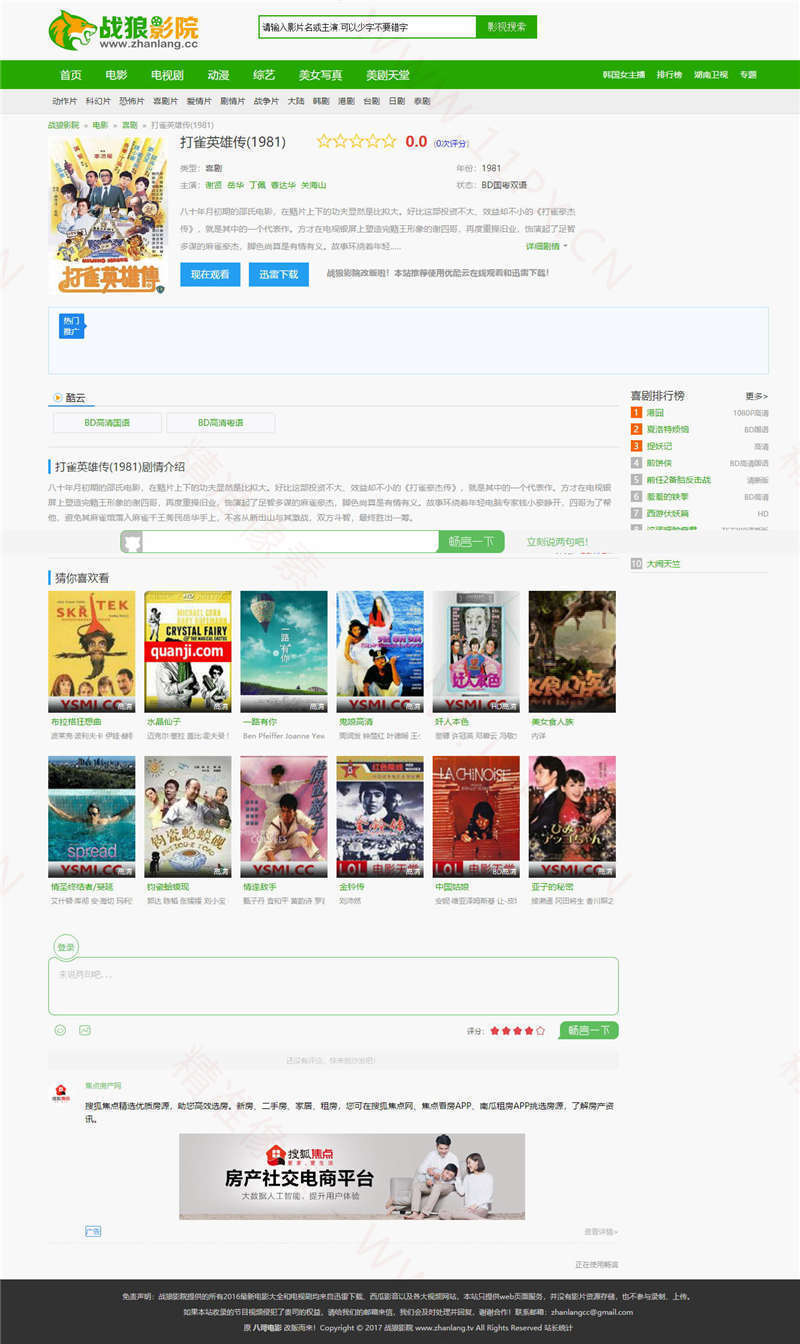 海洋CMS战狼影院PC+WAP模板