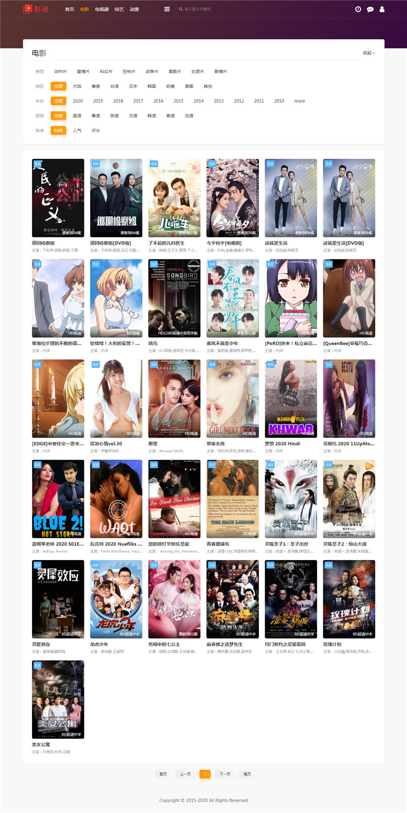 美化修改了:1、导航为一行,2、首页添加幻灯片效果,3、播放页修改为完整显示,不会因为页面的滑动而被导航所遮挡。