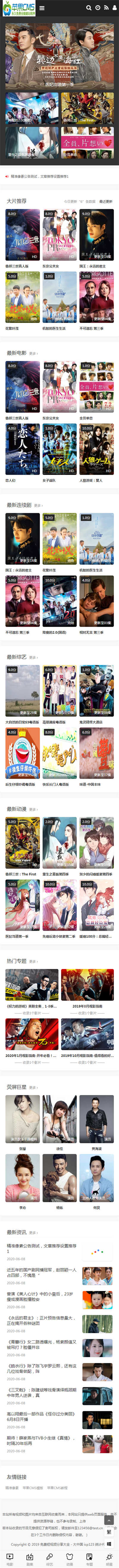 苹果CMSv10首涂第26套模板,自适应手机端,已测试,完美无错,模板全面。