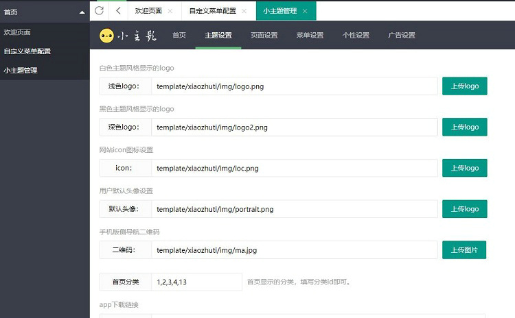 首页上面的广告可以在主题管理 广告设置里 修改,模板整体需要修改替换的内容较多,没有基础的不建议使用这个模板页面设计 ,也可以自己做套壳APP。